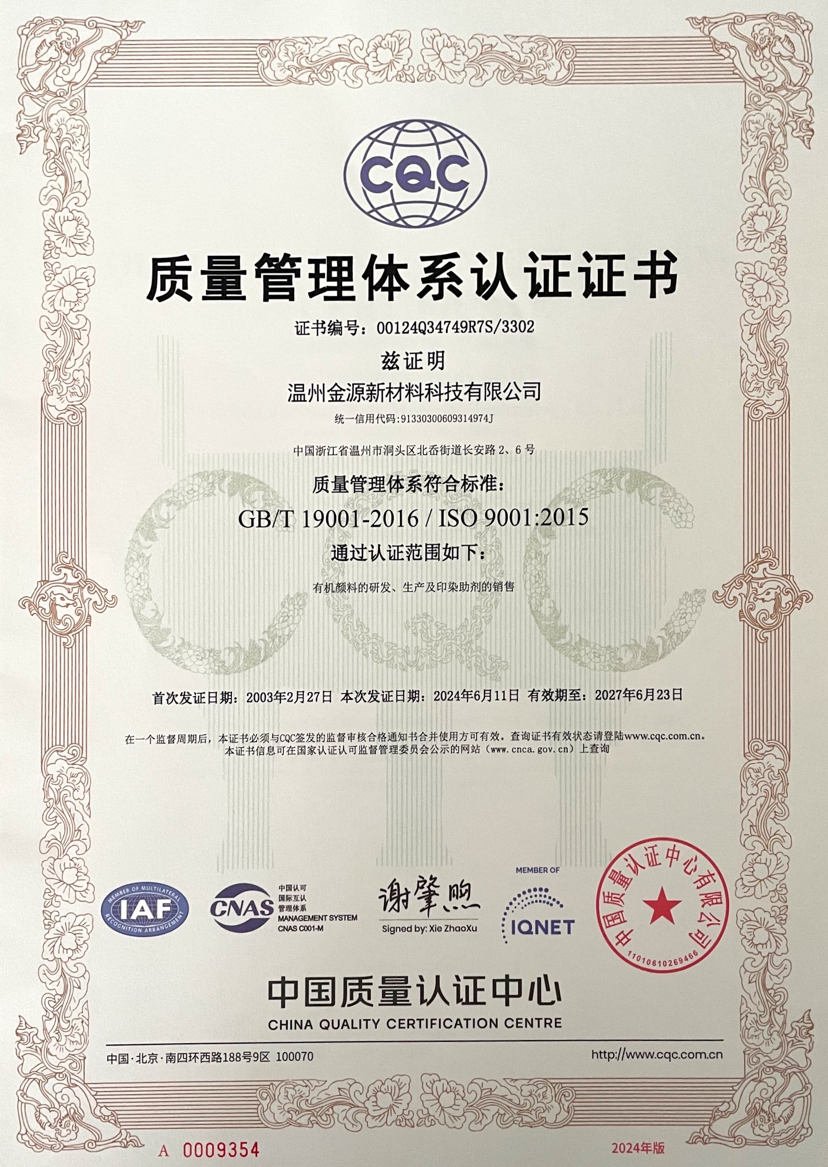 | 質(zhì)量管理體系認(rèn)證證書(shū) |