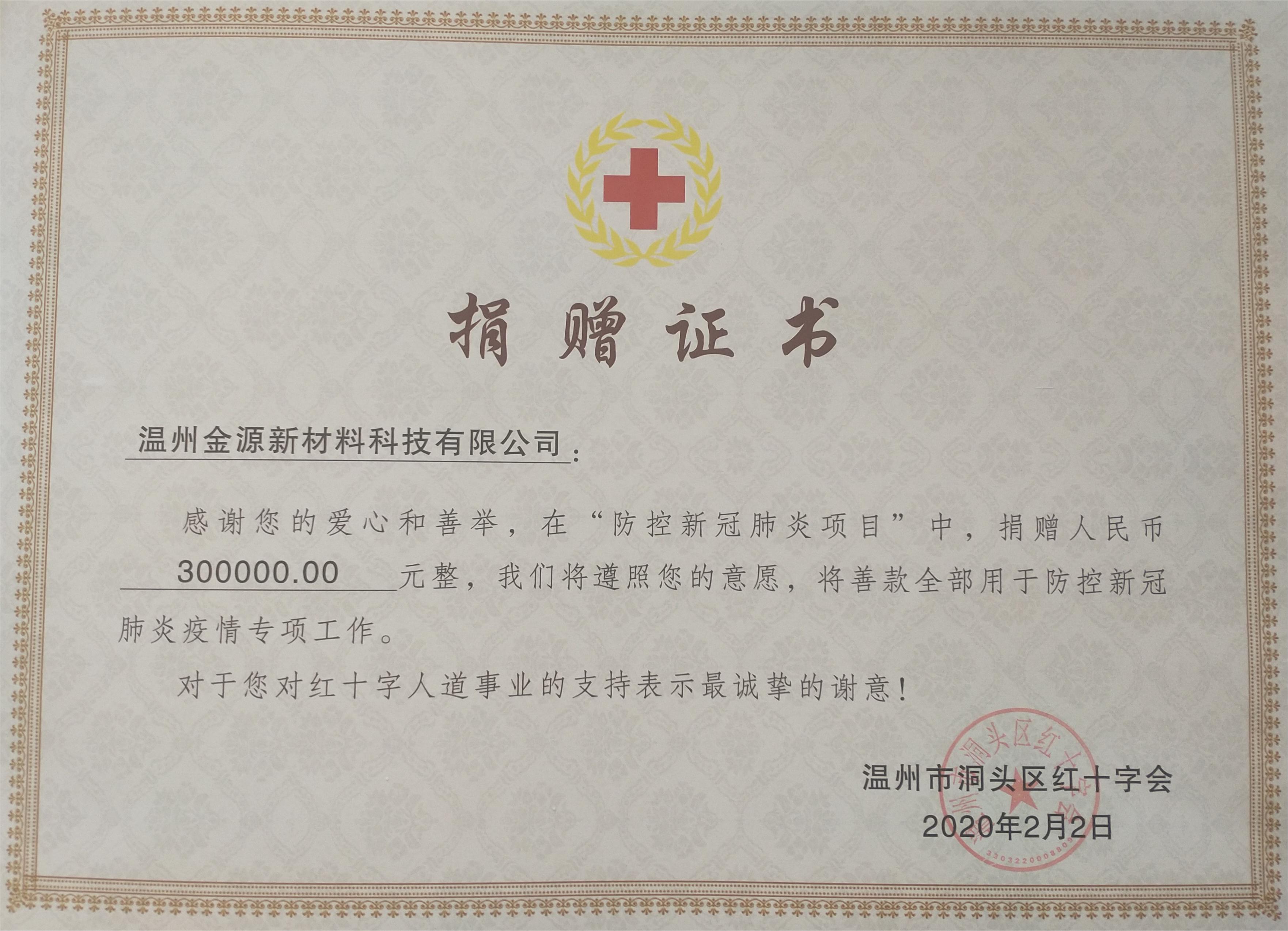 捐贈證書-向洞頭區紅十字會捐贈…